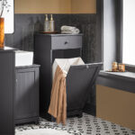 Pastatomos vonios spintelės, Vonios spinteles su skalbinių dėže