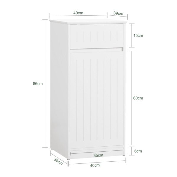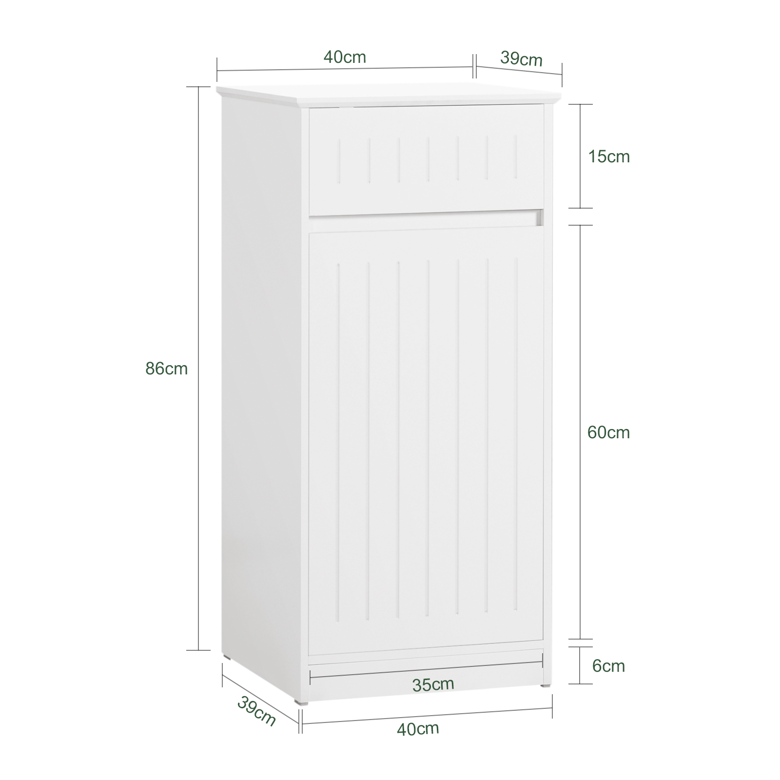 Vonios spintelė su skalbinių krepšeliu 40x39x86 cm, baltos/pilkos spalvos, yra puikus pasirinkimas tiems, kurie ieško elegantiško ir funkcionalaus sprendimo mažoms erdvėms. Dėl gaivios baltos išvaizdos ši spintelė puikiai dera su įvairiais interjero stiliais.
