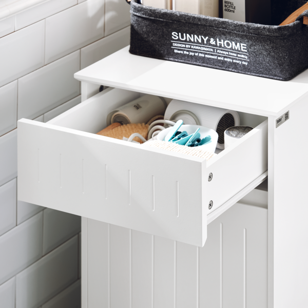 Vonios spintelė su skalbinių krepšeliu 40x39x86cm., baltos/pilkos spalvos BZR110-W