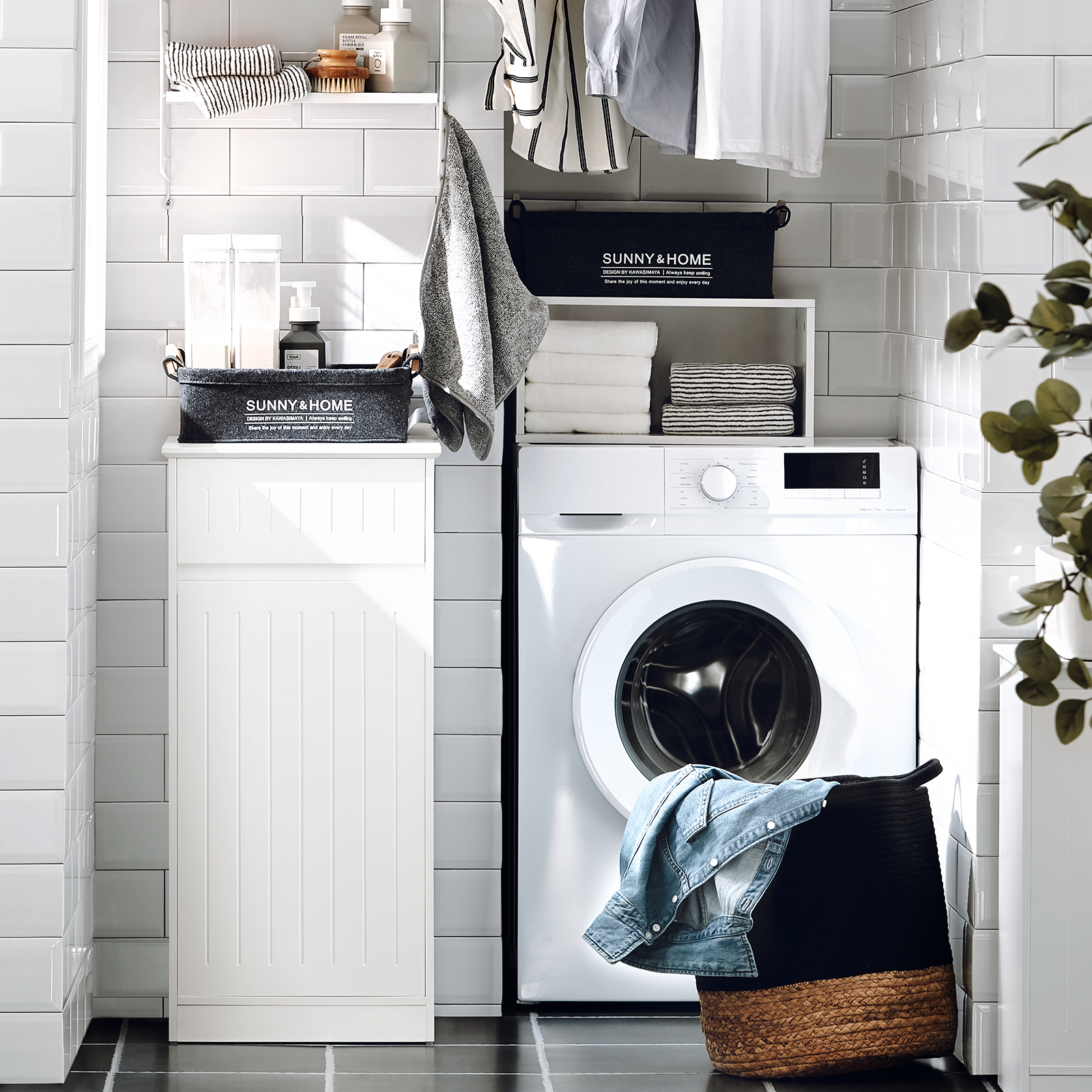 Ši kompaktiška vonios spintelė su skalbinių krepšeliu yra ideali mažoms erdvėms, tokioms kaip vonios kambarys, skalbykla ar miegamasis. Jos kompaktiškas dizainas leidžia lengvai pritaikyti ją mažame kampe, o paprastas montavimas yra papildomas privalumas. Skalbinių krepšelis leidžia tvarkingai paslėpti skalbinius už uždarų durelių, todėl jie visada bus po ranka.