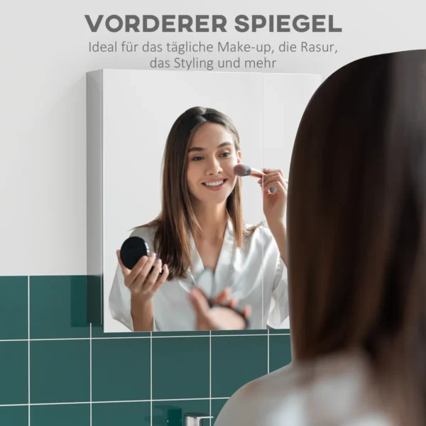 - ✔ 3 vidinės lentynos kosmetikos ir kasdienės higienos reikmenims laikyti.