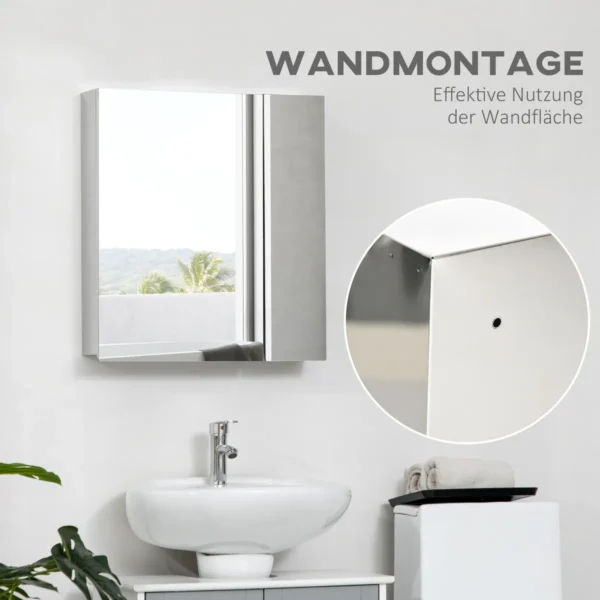 Su šia nuostabia, modernia kleankin vonios kambario veidrodine spintele galima tvarkingai laikyti visus vonios reikmenis. Trijose lentynose telpa veido kremas, makiažas ar kitos kasdienės higienos prekės. Priekyje esantis veidrodis užtikrina, kad viskas būtų gerai apsaugota ir bet kuriuo metu galėsite lengvai atsigaivinti vonioje. Montavimas ant sienos reiškia, kad nereikia papildomo grindų ploto. Mėgaukitės su šia praktiška, nesenstančia veidrodine spintele!