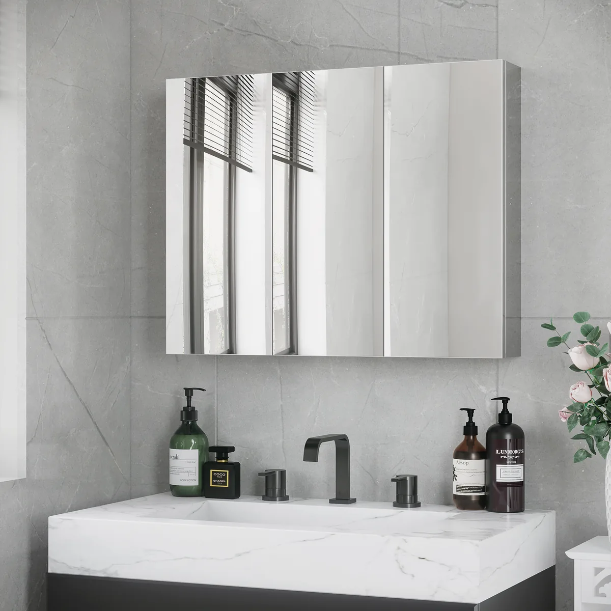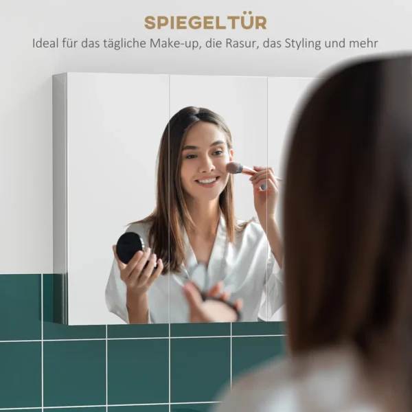 - ✔ 5 vidinės lentynos kosmetikos ir kasdienės higienos reikmenims laikyti✔ Su veidrodinėmis durimis
