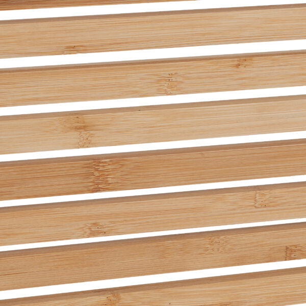 Transformuokite savo vonios kambarį į asmeninę sveikatingumo oazę su šiuo elegantišku ir funkcionaliu vonios staliuku. Pagamintas iš patvaraus bambuko, šis staliukas ne tik suteikia prabangos pojūtį, bet ir yra ypač atsparus drėgmei, todėl puikiai tinka naudoti vonioje.