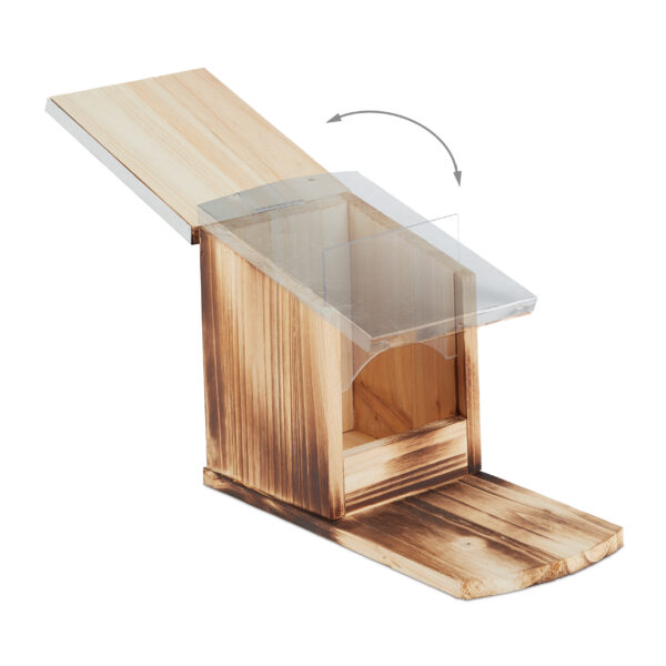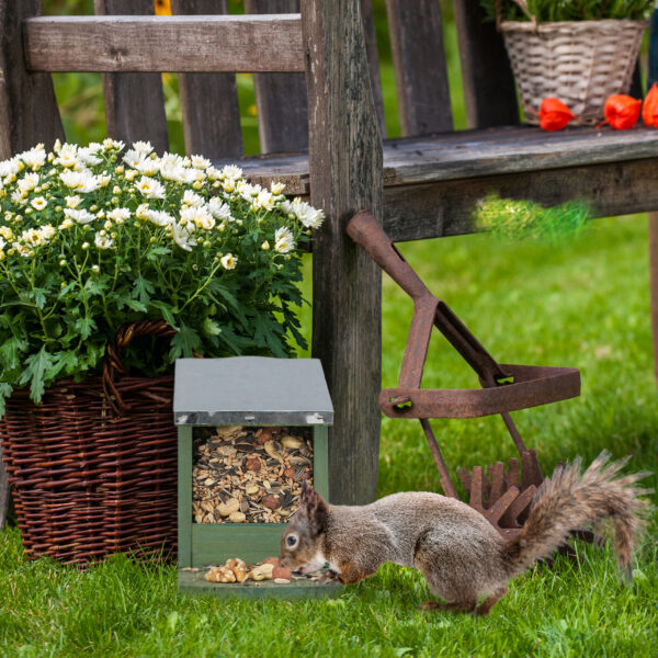 Stebėkite voveres iš tolo ir mėgaukitės savo karalystės gyvūnų įvairove. Norėdami užtikrinti dar didesnį atsparumą oro sąlygoms, rekomenduojame padėti pašarų namelį apsaugotoje vietoje arba nudažyti jį papildomai.