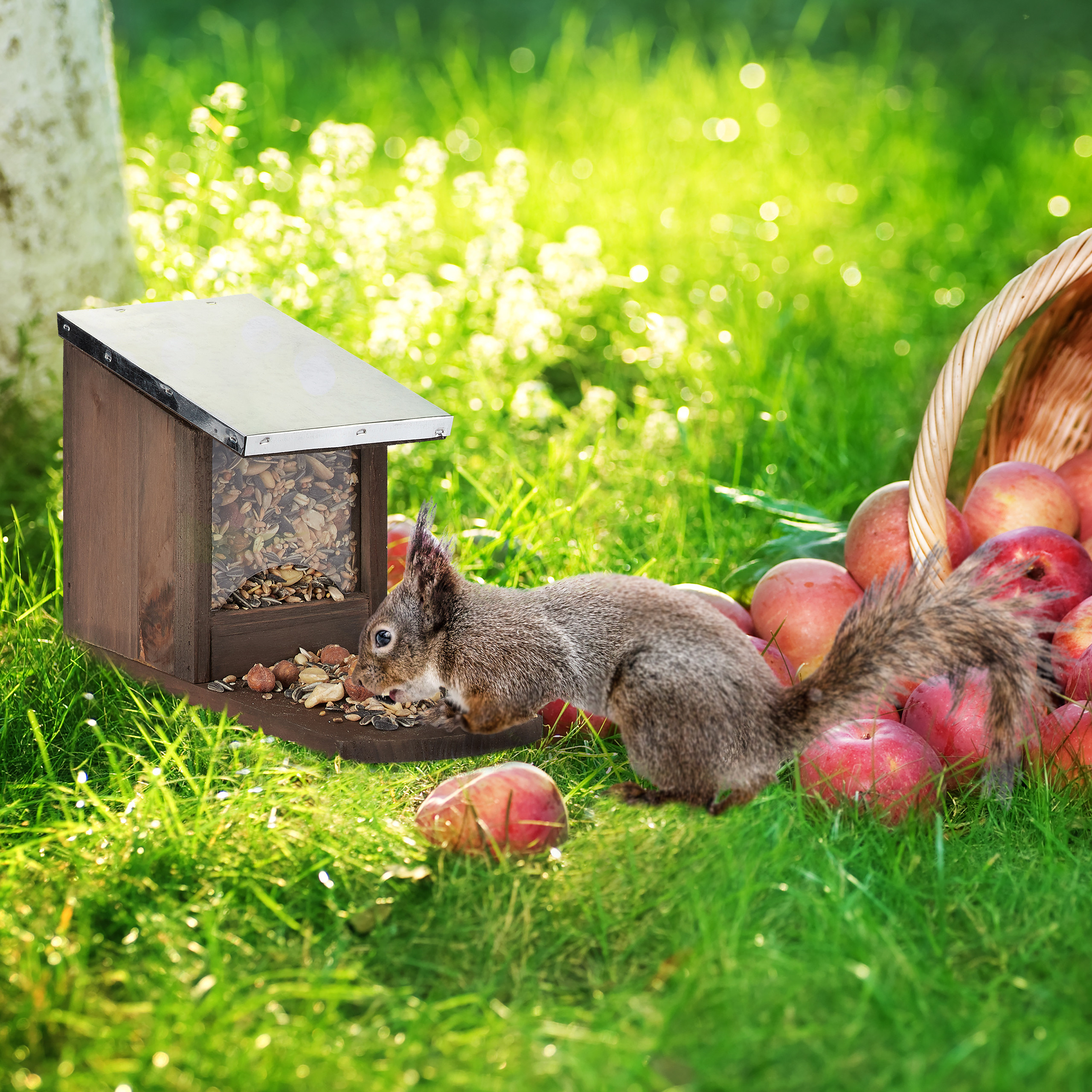 Praturtinkite savo sodą ar balkoną su šiuo elegantišku ir funkcionaliu voverių maisto tiektuvu. Pagamintas iš natūralaus medžio ir padengtas orui atspariu metaliniu stogu, šis tiektuvas ne tik pritrauks mielas voveres, bet ir suteiks joms saugią vietą mėgautis skaniais užkandžiais.