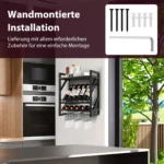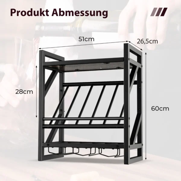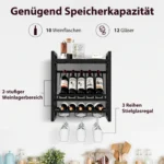 Vyno lentyna 51×26,5x60cm, rudos ir juodos spalvos, skirta patogiam vyno butelių bei taurių laikymui. Ši sieninė lentyna padeda efektyviai išnaudoti erdvę ir palaikyti tvarką virtuvėje, valgomajame ar svetainėje.