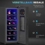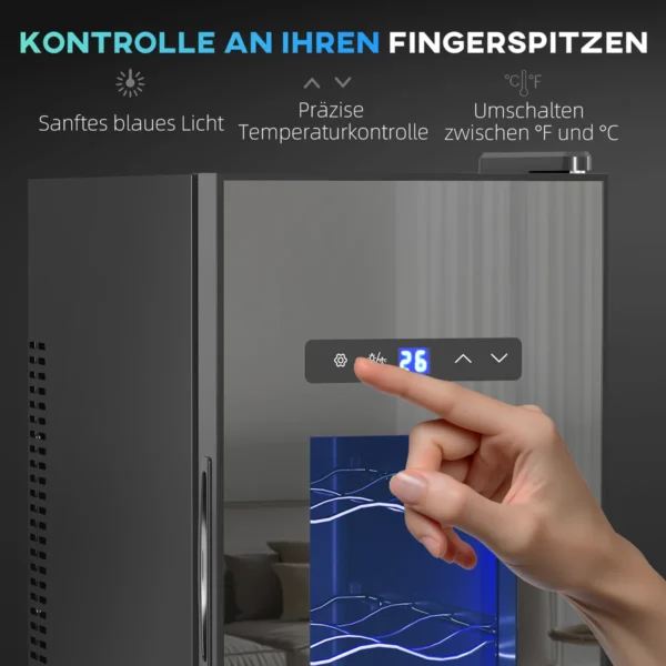 Mėgaukitės puikiai grūdintu gėrimu su HOMCOM vyno šaldytuvu. Elegantiškas dvigubas stiklas su skaidriu LED apšvietimu leidžia aiškiai matyti jūsų vyno kolekciją. Temperatūrą galima reguliuoti nuo 8 iki 18°C – idealiai tinka įvairiems vynams ir kitiems gėrimams. Kompaktiškos konstrukcijos gėrimų šaldytuvas telpa po bet kokiu stalu ar stalviršiu.