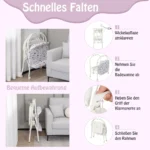- Išmatavimai išskleidus: 86 x 50 x 100 cm (P x P x A)