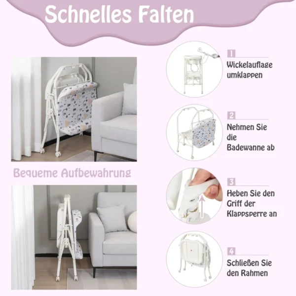 - „4 viename“ funkcija: vystyklų keitimas, maudymas, masažas, kūdikių reikmenų laikymas.