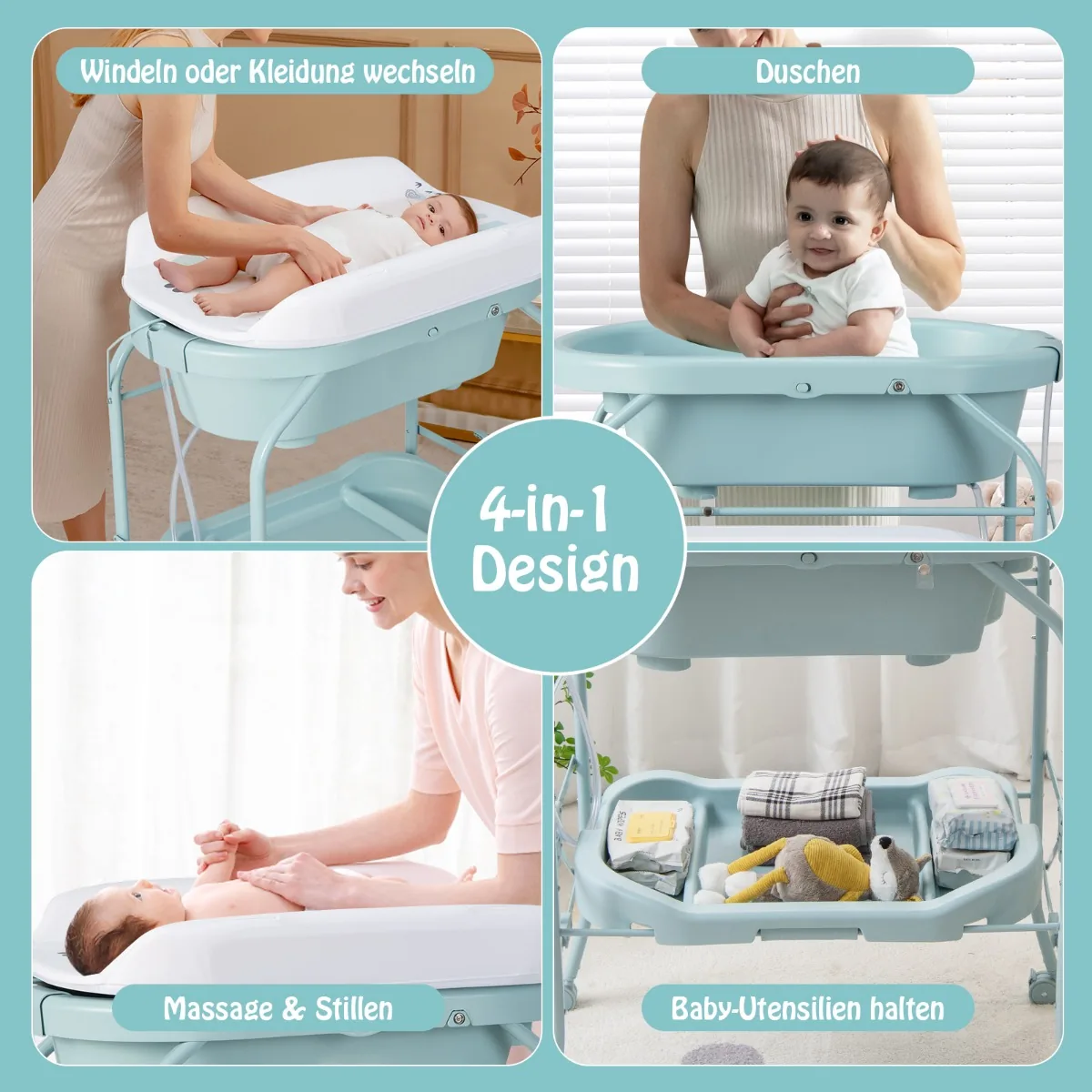 - Persirengimo stalas su vonia, tinkamas kūdikio vystyklų keitimui, maudymui ir masažui.