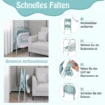 - Matmenys išskleidus: 86 x 50 x 100 cm (P x P x A)