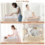 • Keturi viename funkcija: vystyklų keitimas, maudymas, masažas ir daiktų laikymas.
