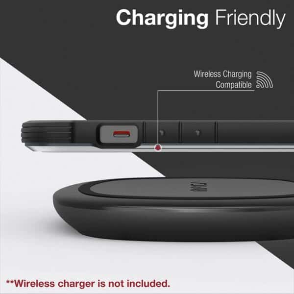 Raptic Shield iPhone 13 Pro dėklai gali atlaikyti iki 10 pėdų kritimą ant betono. Negalite gauti daug daugiau apsaugos nei tai! Naudojame apdirbtą aliuminio metalą, kad suteiktume jūsų dėklui tvirtą pagrindą, užtikrinantį karinio lygio apsaugą nuo kritimo ir skaidrią nugarą, kad parodytume tikrąją jūsų iPhone spalvą. Pagrindinis elementas yra minkštas guminis burbulas, įdėtas į korpuso vidų, kuris sugeria smūgius ir nukreipia smūgį nuo jūsų įrenginio. Shield yra suderinamas su MagSafe įkrovikliais ir qi belaidžiais įkrovikliais, kurių galia yra 15 W. Tačiau tai nesuderinama su kitais MagSafe priedais, tokiais kaip MagSafe piniginės ar automobilio laikikliai.