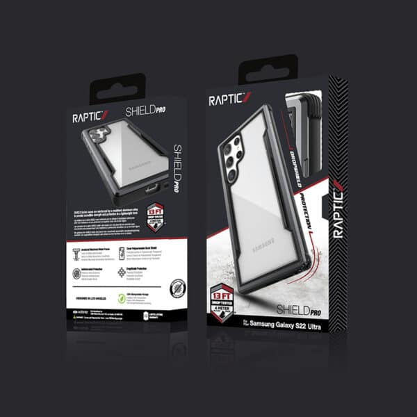 Naudojant kieto polikarbonato, minkštos gumos ir anoduoto aliuminio derinį, mūsų „Raptic Shield Pro“ dėklas yra geriausia apsauga, kokios tik galite norėti savo Samsung Galaxy S22 Ultra 5G. Naudojame apdirbtą metalą, kad suteiktume jūsų korpusui tvirtą pagrindą, kuris užtikrina karinio lygio apsaugą nuo kritimo nuo 13 pėdų ant betono, išlaikant aptakų stilių, atitinkantį jūsų rafinuotą, bet aštrų skonį. Štai kodėl mes jį palaikome su skaidriu polikarbonatu, kad galėtumėte demonstruoti savo Galaxy S22 Ultra 5G ir išlaikyti jį saugų.