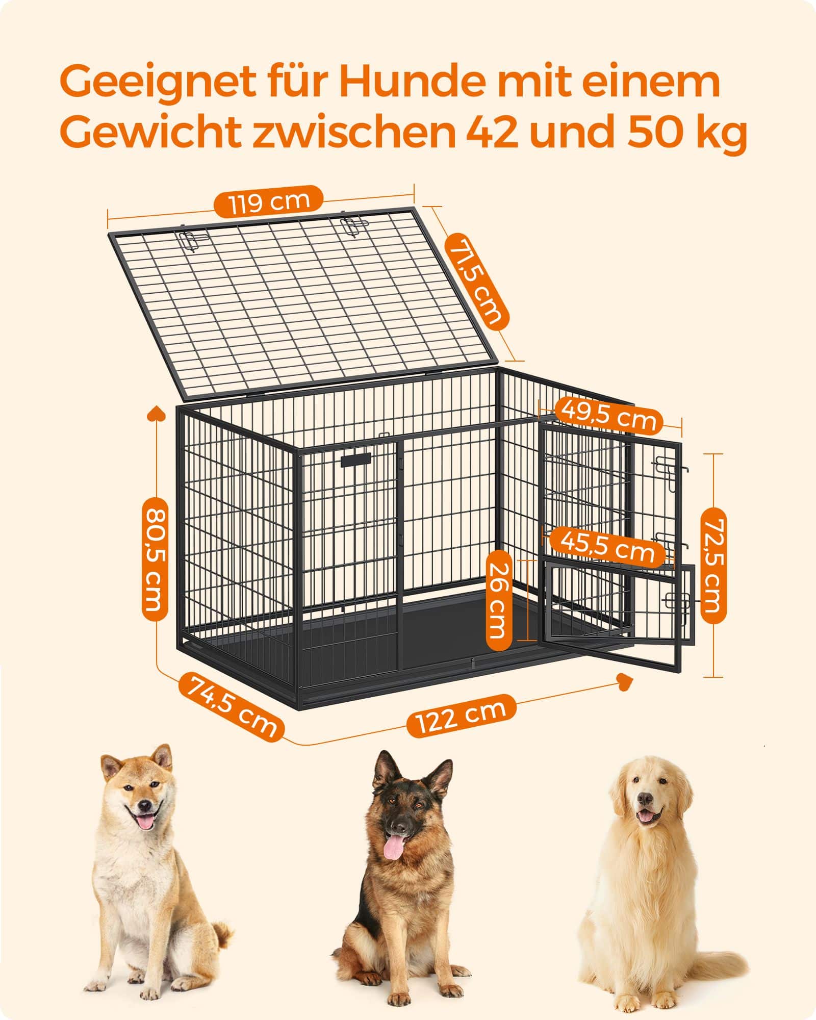 Jo matmenys yra 122 x 74,5 x 80,5 cm (Ilgis x Plotis x Aukštis), todėl jis suteikia pakankamai erdvės jūsų šuniui jaustis patogiai.