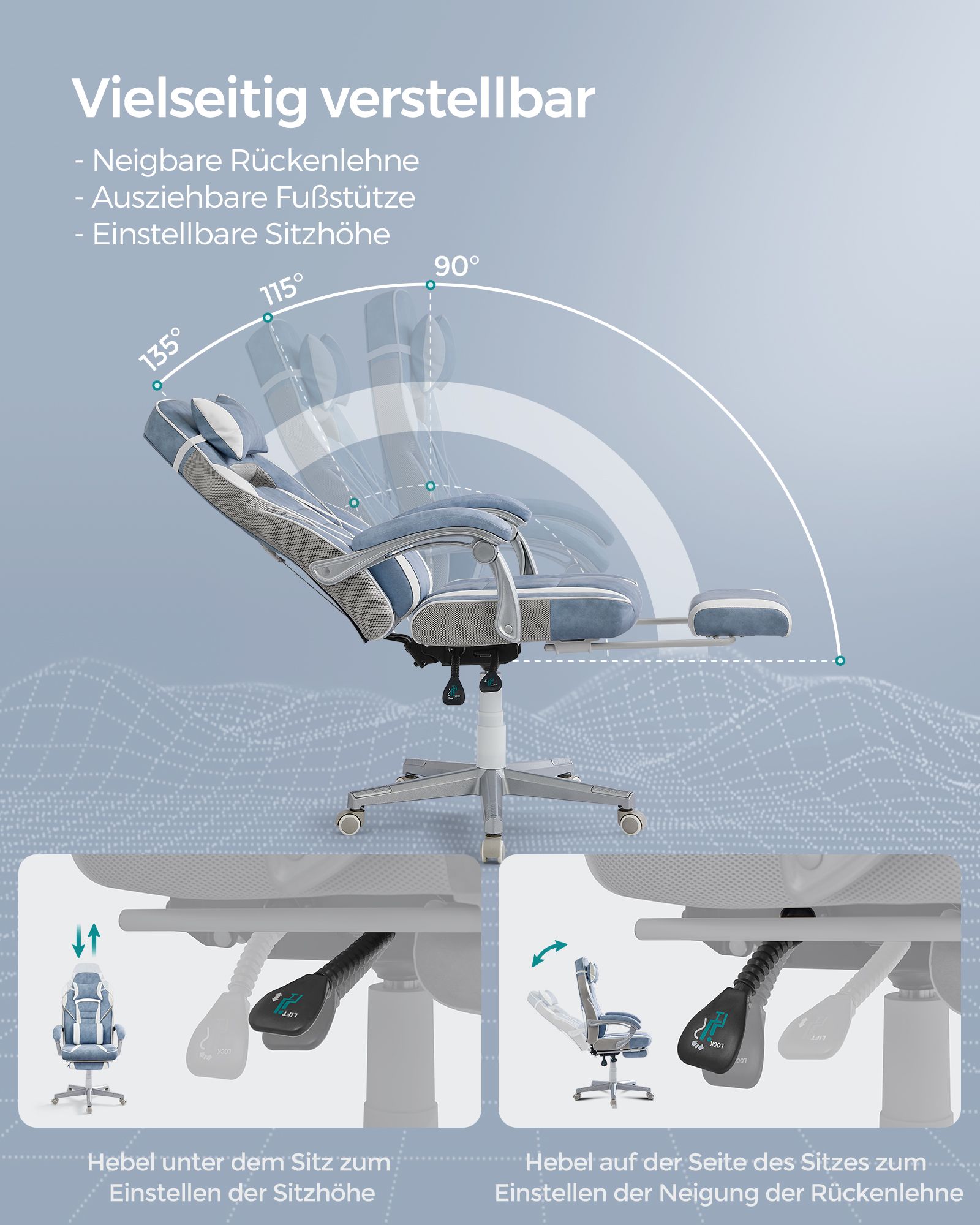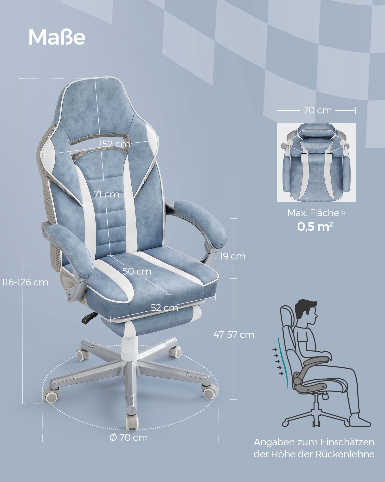 Patirkite aukščiausio lygio komfortą ir stilių su mūsų žaidimų kėde, kurios išmatavimai yra 70x70x126 cm. Ši kėdė yra puikus pasirinkimas tiek profesionaliems žaidėjams, tiek tiems, kurie tiesiog mėgsta praleisti laiką prie kompiuterio. Jos elegantiškas baltos ir mėlynos spalvų derinys suteiks jūsų kambariui modernumo ir išskirtinumo.