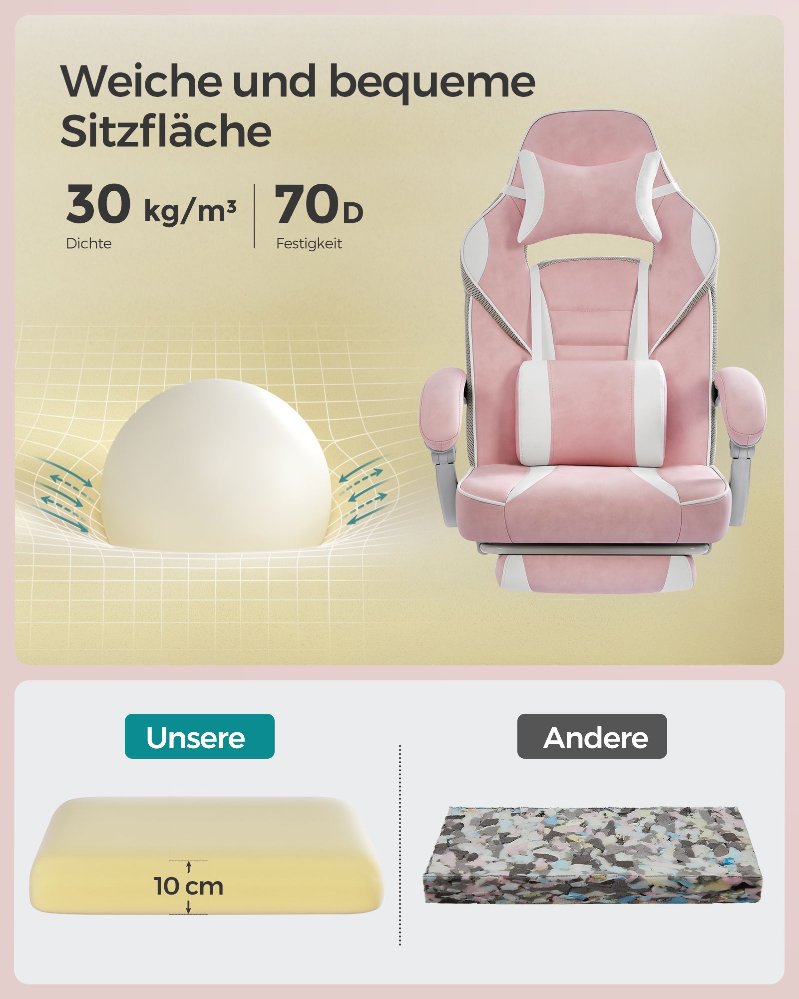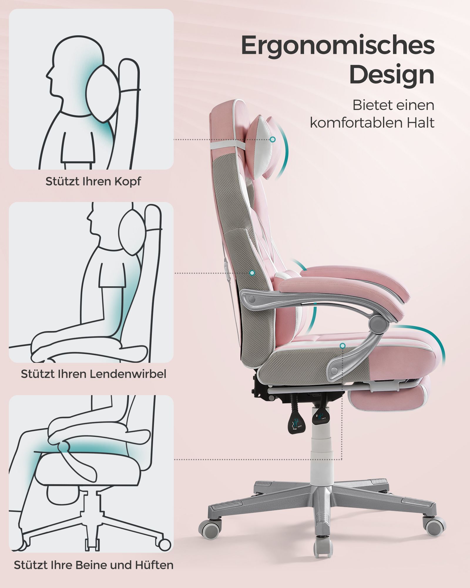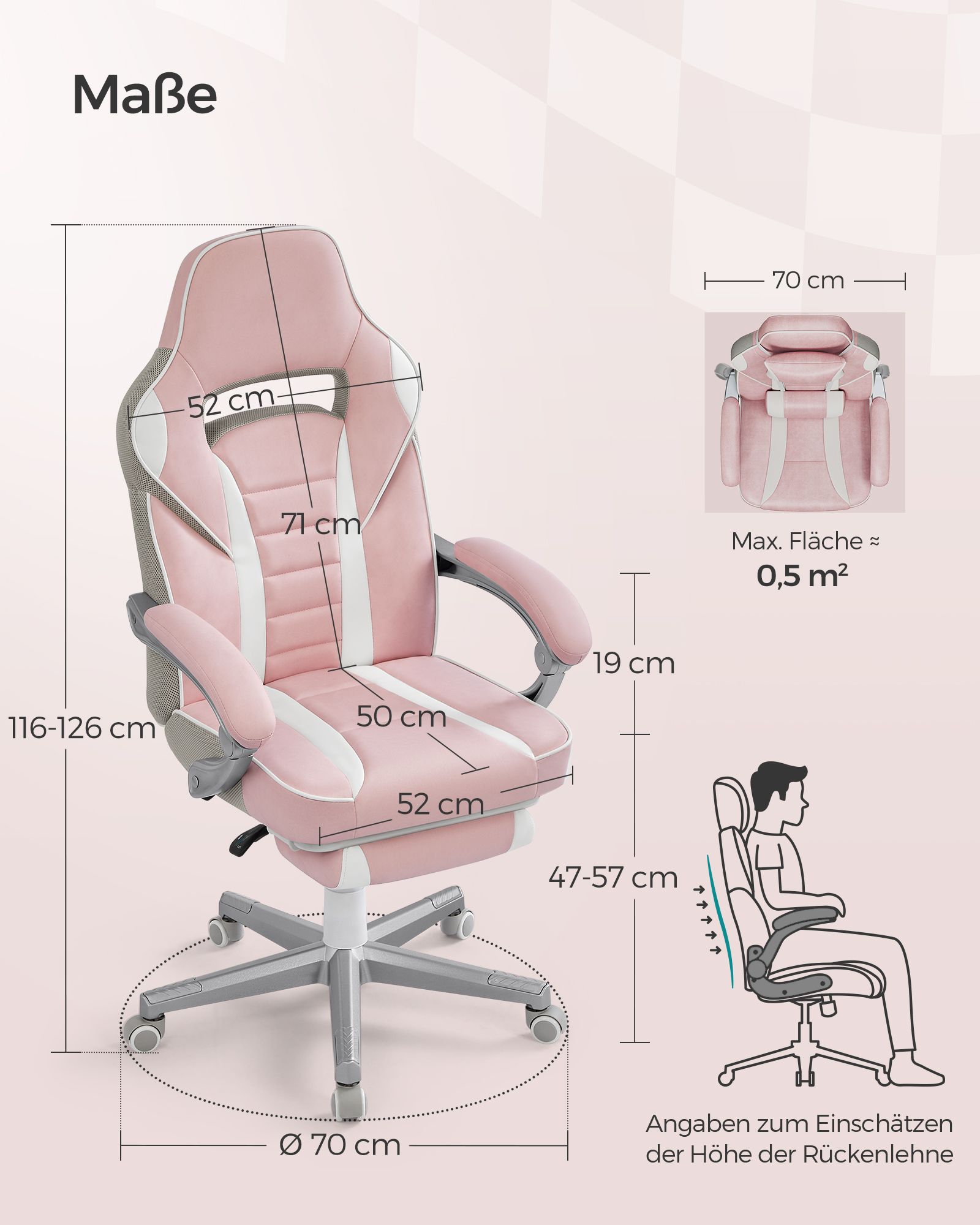 Žaidimų kėdė 70x70x126cm, baltos/rožinės spalvos