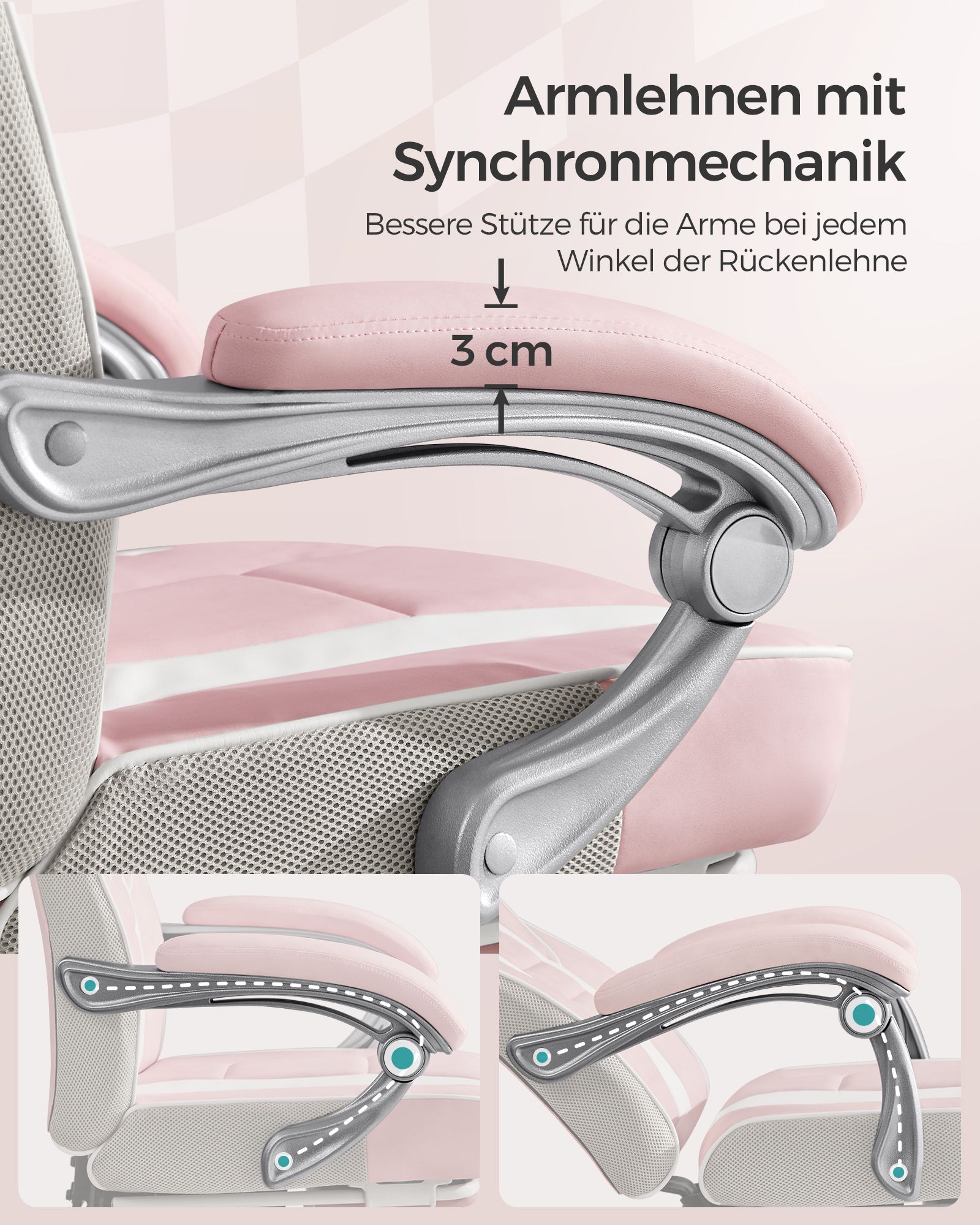 - Patogūs porankiai: Minkšti ir patogūs porankiai suteikia papildomą atramą rankoms.