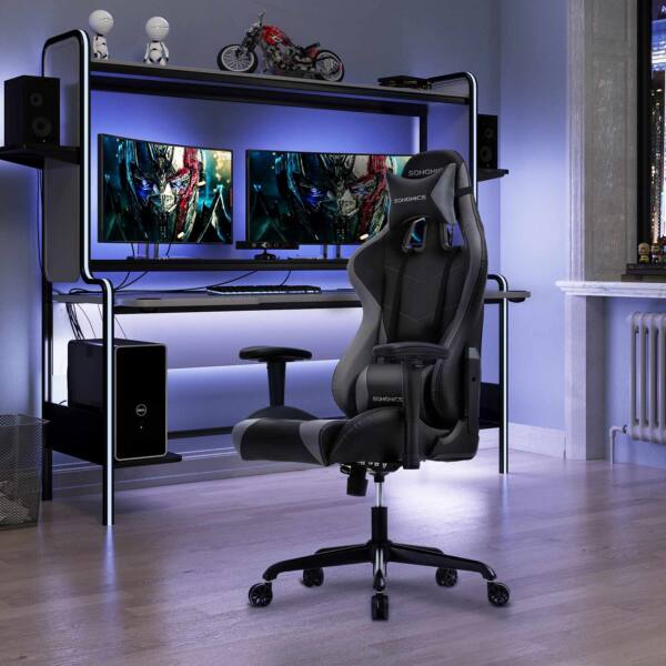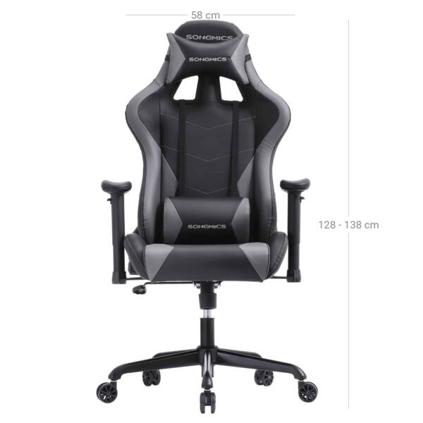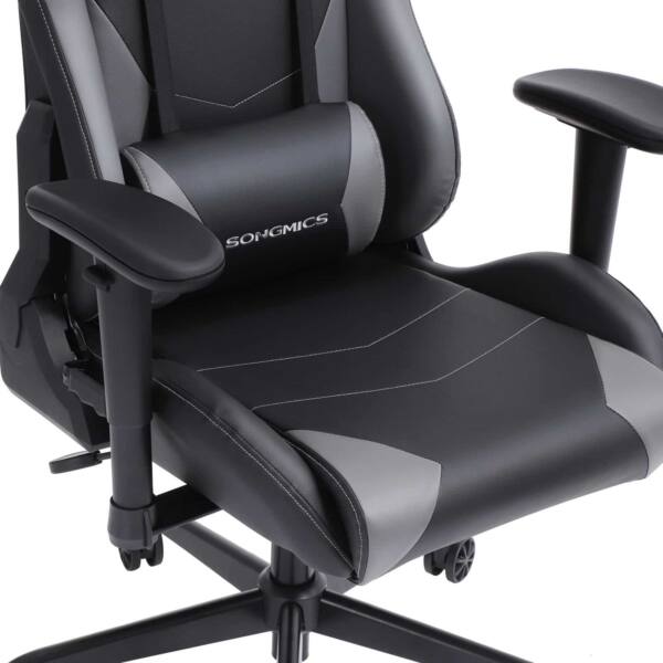 Aukštos kokybės, patogi ir daugiafunkcinė žaidimų kėdė su dirbtine oda, juodai pilkos spalvos, užtikrina maksimalų komfortą dėl ergonomiško dizaino ir sėdynės su stabiliomis matmenų putomis. Net jei jūsų komandos draugas ilgą laiką yra AFK, jūs galėsite mėgautis patogumu.