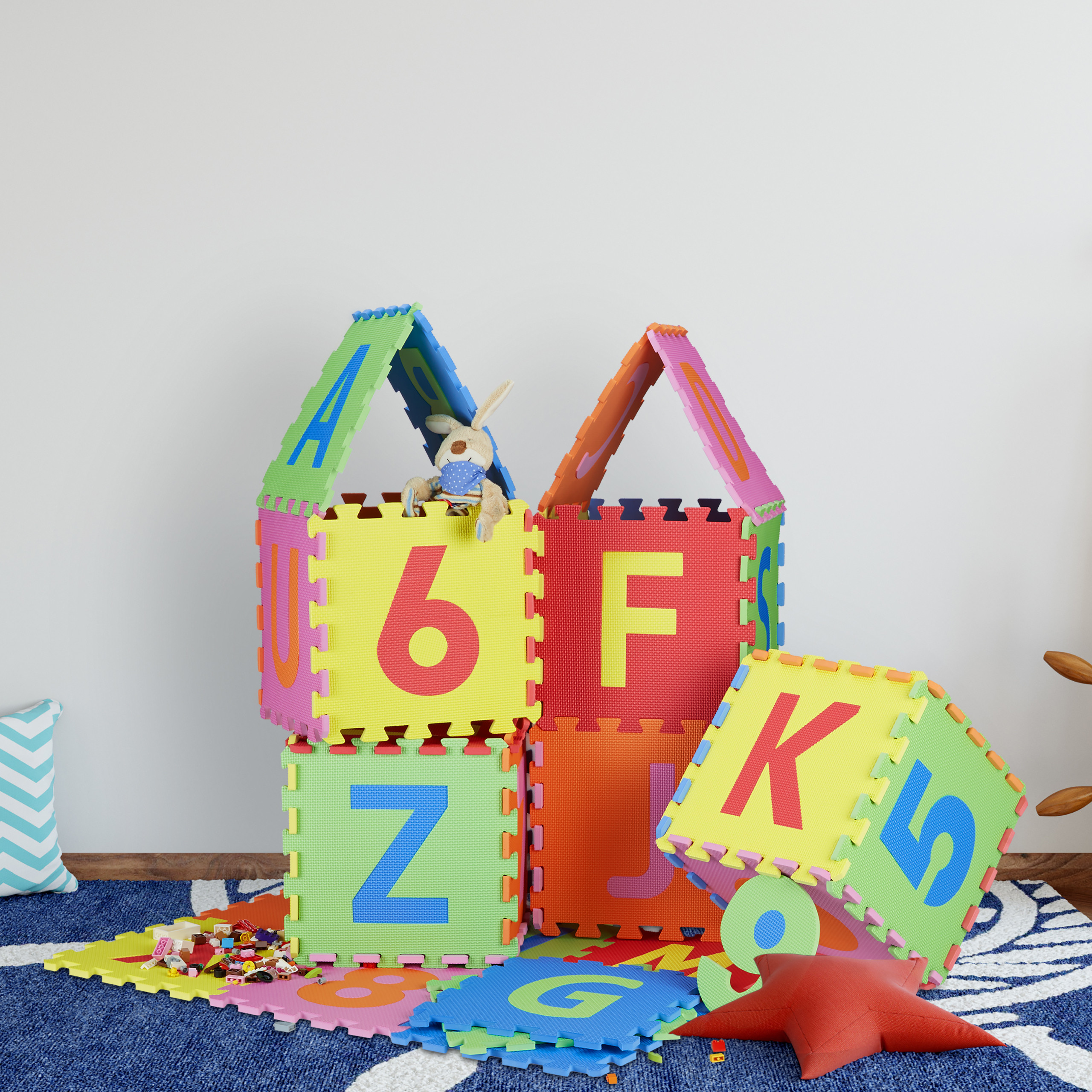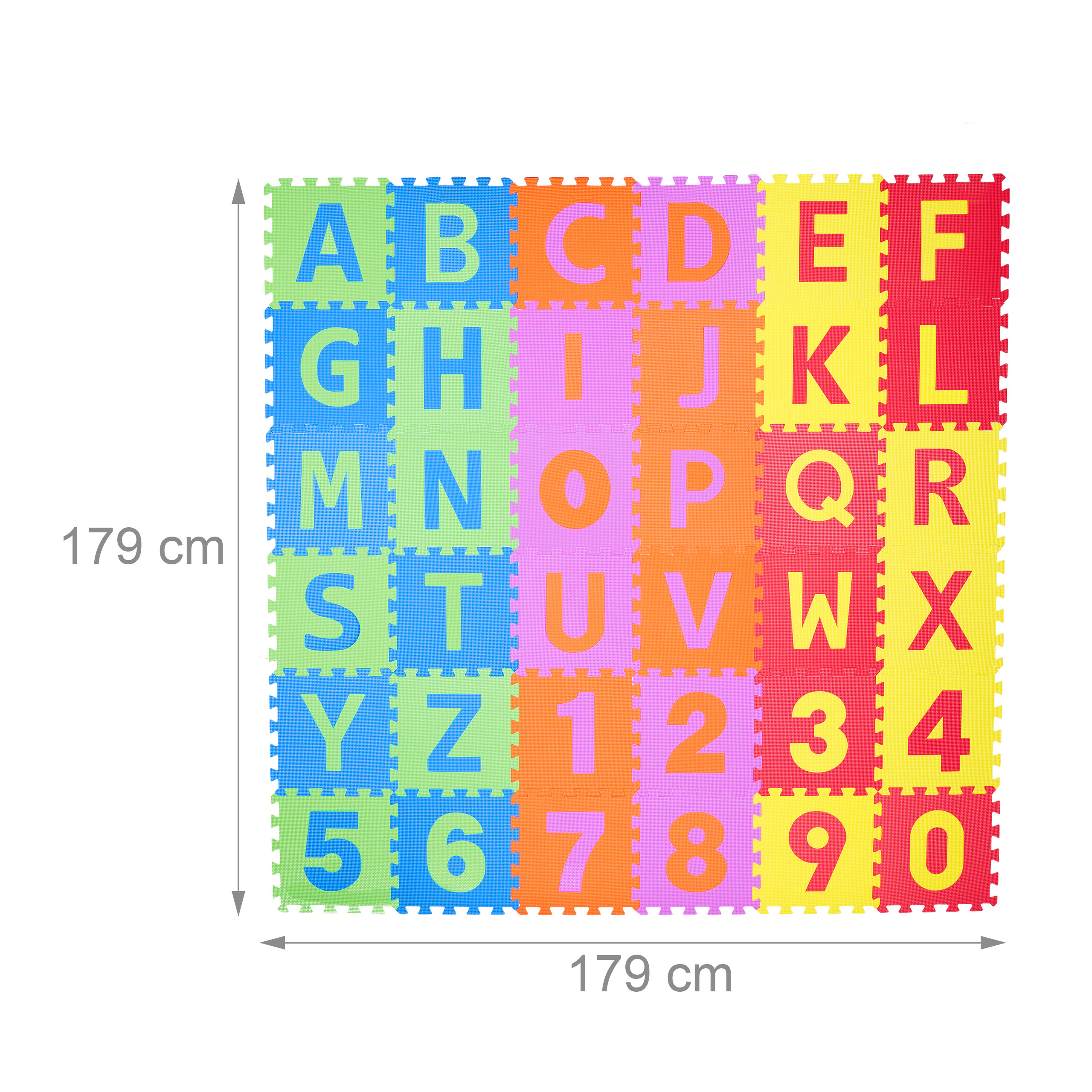 - 36 dėlionės dalys su raidėmis nuo A iki Z ir skaičiais nuo 0 iki 9.
