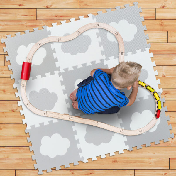 Leiskite savo vaikams pasinerti į svajonių pasaulį su šiuo nuostabiu vaikišku putplasčio kilimėliu, dekoruotu debesų motyvais. Šis kilimėlis ne tik suteikia žaidimų erdvei estetinį žavesį, bet ir užtikrina jūsų vaikų komfortą bei saugumą.