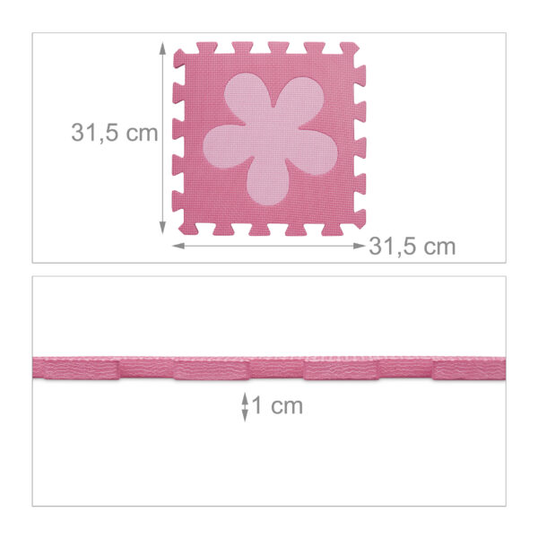 - Modulinis dizainas: 9 dalių kilimėlį galima lengvai sujungti pagal jūsų pageidavimus, leidžiant sukurti individualią žaidimų erdvę. Nuimami gėlių motyvai suteikia papildomą lytėjimo pojūtį, kuris ypač patiks mažiesiems.