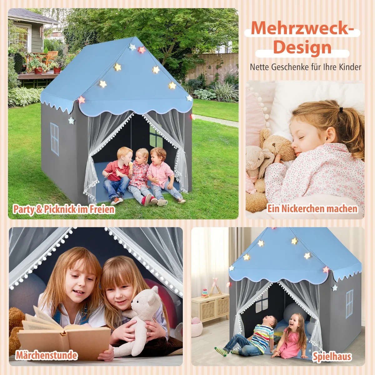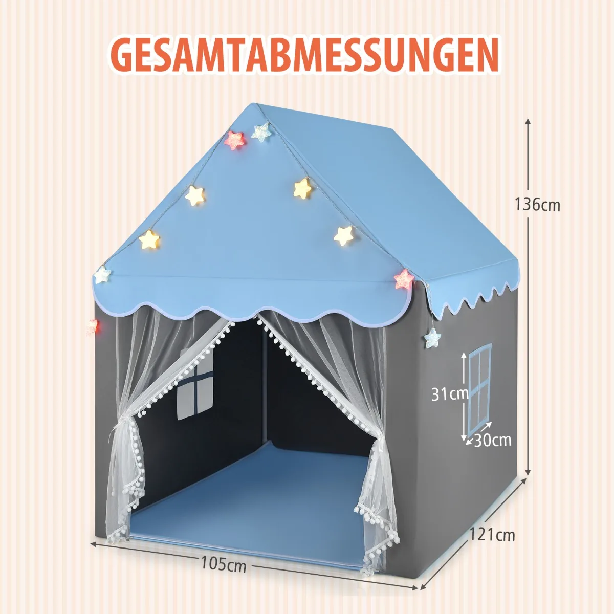 Žaidimų palapinė 105x121x136cm mėlynos ir pilkos spalvos – patogi vieta vaikams žaisti, skaityti ir ilsėtis tiek namuose, tiek lauke. Dėl patvarios konstrukcijos ir kvėpuojančių medžiagų ši palapinė skatina vaikų kūrybiškumą bei suteikia saugią aplinką žaidimams.