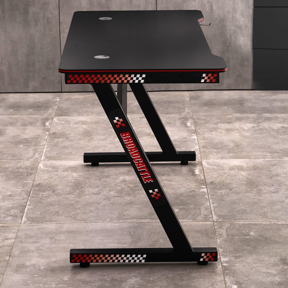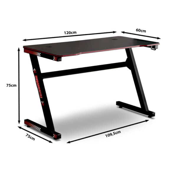 Tvirtas žaidimų stalas stebina savo ergonomišku dizainu ir paprastu naudojimu. ; Didelis, platus stalviršis ir tinkamas aukštis užtikrina malonumą juo naudotis žaidžiant, dirbant ar mokantis. ; Dvi angos laidams palengvina erdvės sutvarkymą ant stalviršio ir apsaugo nuo nereikalingo kabelių susipainiojimo. ; Stalviršyje taip pat yra įmontuotas ausinių laikiklis. Juoda spalva ir anglies įdėklai puikiai dera prie žaidimo stiliaus. ; Techninė specifikacija: ; Matmenys (P/A/G): 120cm x 75cm x 75cm, Stalviršio matmenys: 120cm x 60cm x 1,5cm, Kojos plotis: 109,5cm, Kojų aukštis: 73,5cm, Ausinių laikiklio ilgis: 5cm (galima montuoti dešinėje arba kairėje), Kabelio anga: Ø 4,5cm (Ø 2cm su ›lipniu), Viršutinis storis: 15mm, Medžiaga: plienas ir MDF plokštė, Spalva: juoda, Svoris: 16 kg. ; ; Komplekte: 1x žaidimų stalas, 1x montavimo rinkinys. ; Dėžutės matmenys: 126 x 65 x 15 cm ; ; ; ;