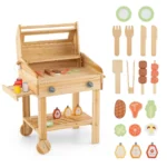 Žaislinė kepsninė 53x36x63cm, šviesiai rudos spalvos, skirta vaikams nuo 3 metų. Medinis kepsninės rinkinys iš eglės medienos suteikia galimybę vaikams žaisti su kepsninės priedais, lavinant kūrybiškumą ir rankų bei akių koordinaciją. Komplektas idealiai tinka vaidmenų žaidimams ir mokymuisi.