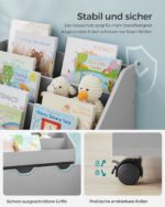 Ši elegantiška ir funkcionali žaislų lentyna yra puikus sprendimas tvarkingai ir stilingai laikyti vaikų žaislus bei kitus daiktus. Jos subtili balandžio pilka spalva puikiai derės prie bet kokio interjero, suteikdama kambariui modernumo ir švaros pojūtį.