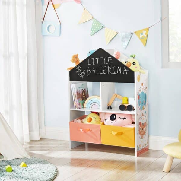 Dėžutė, pilna fantazijos! Ši žaislų lentyna GKR320W01 su dviem erdviomis žaislų dėžėmis, dviem atviromis lentynomis viduryje ir skyreliais viršuje sužadins jūsų vaikų vaizduotę. Knygos, statybiniai blokeliai ir žaidimų figūrėlės – viskas čia turi savo vietą. Laimė čia yra viskas. Jūsų vaikai didžiuosis galėdami parodyti draugams šią žaislų lentyną, nes visi jų lobiai ras vietą šiuose „namuose“. Jie taip pat gali išreikšti savo meninę ir kūrybinę pusę prie lentos, kad būtų dar smagiau.