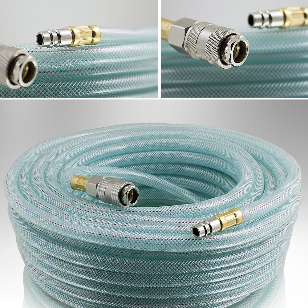 PNEUMATINĖ ŽARNA 10M + 1/4 colio JUNGTIS APRAŠYMAS: Naudinga dirbant dirbtuvėse, sode ar namuose. 10 m ilgio leis patogiai dirbti, o universali 1/4 colio jungtis leis prisijungti prie daugumos pneumatinių įrenginių. Žarna pagaminta iš PVC, todėl yra labai atspari pažeidimams net esant 20 Bar slėgiui. Techniniai duomenys: Ilgis: 10m Maks. slėgis: 20 barų esant 20°C Medžiaga: PVC Vidinis skersmuo: 7 mm Išorinis skersmuo: 13 mm Jungtis: 1/4 colio ĮSKAIČIUOTA: ; 1 x Oro žarna 10 m